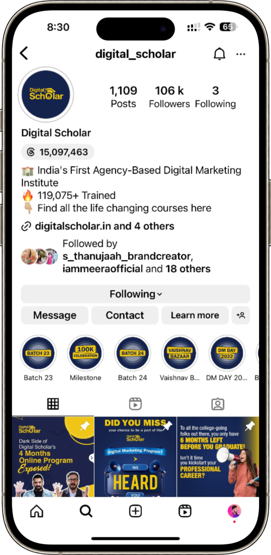 "I have successfully grown my Instagram account over 27,000 followers in just few months, after joining Digital Scholar."